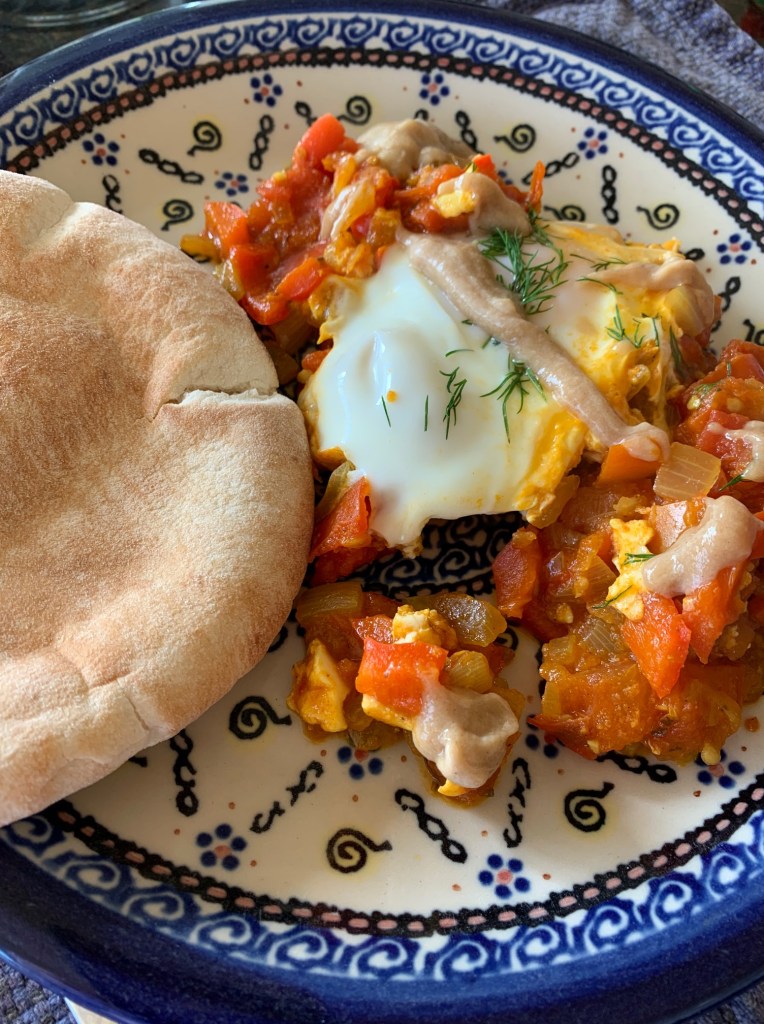 For my first country, I chose a dish rather than a country to determine my path. I had often seen Shakshuka on brunch menus in a variety of forms. Shortly before I started this project in January, I bought a new cookbook, “Eating Out Loud” by Eden Grinshpan. In addition to boasting a number of exciting recipes from the Middle East, this cookbook include a variety of recipes for this dish and I felt it was time to give its most classic interpretation a shot. I chose to make her classic Shakshuka with Garlicky Tahini as I am always pro garlic and I have started to use Tahini more often in my cooking so I already had most of the ingredients on hand.