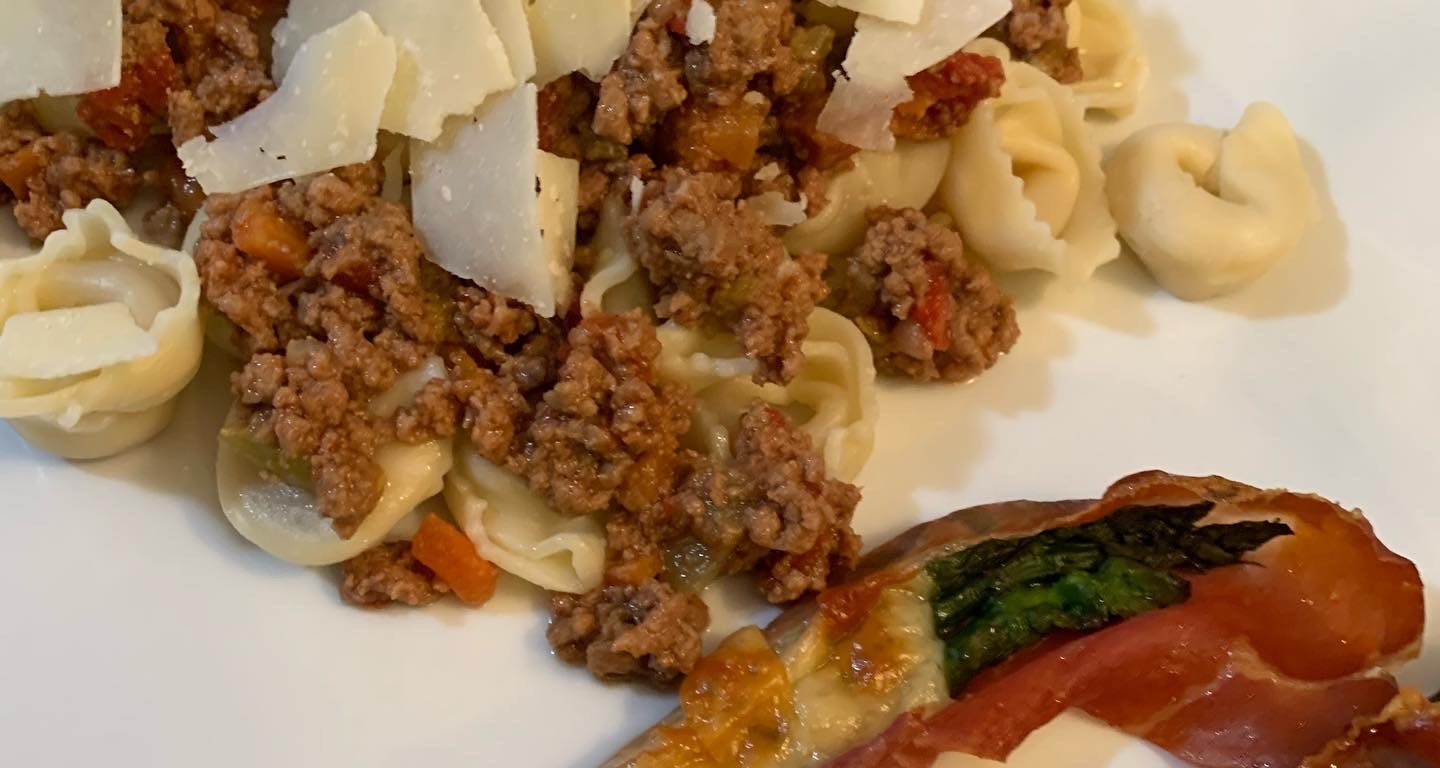 Now on to the cooking for this task. That same friend bought me an Italian cookbook, Marcella Hazan’s “Essentials of Classical Italian Cooking” for a holiday gift exchange so I was ready to dive in. There were countless recipes to choose from but I was really craving a Bolognese sauce and “something with prosciutto” so this is where I landed. The overall texture of the meat fell more into the traditional ground beef arena than the very finely ground beef that I think may be achieved by going to a proper butcher to get the meat ground down further, or maybe going to an Italian grocer (note to self for next time). I thought the flavors were there but the overall look was not as I envisioned. Looking back at the recipe, I can only surmise that the cut of meat might not have been right or I should have gone longer than the three hours of cooking time to really let it break down. The Prosciutto & Cheese Wrapped Asparagus bundles? Perfection.