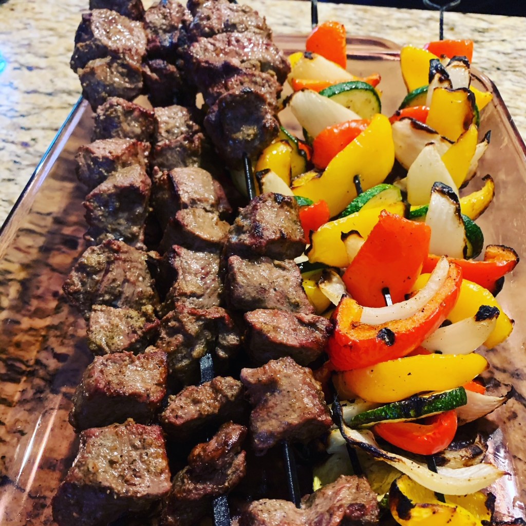 In early June, I decided to travel to Pittsburgh to work from my dad’s house for a week for a change of scenery. I wanted to try and stay on track with my project, but given that I didn’t want to haul a ton of random ingredients to Pittsburgh, or take the time to try to find them, I decided to go with a kebab recipe representing Tanzania that included a lot of pantry staples. The majority of these ingredients already existed in my dad’s pantry. All I needed was a good steak and a bunch of time. Fortunately it was easy to plan to marinade this for 24 hours and I picked up a sirloin steak at Giant Eagle. Dad manned the grill and I enjoyed an Old Fashioned while he took control of cooking this meat to perfection…along with a mess of vegetables.
