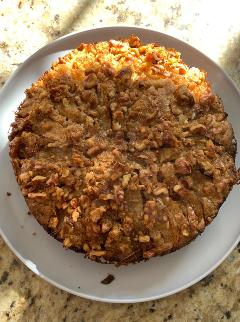 I love apple desserts. Whether a tart, a dumpling a pie, or something in between, SIGN ME UP. To take a break from the main dishes, I decided to try my hand at a different recipe for an apple cake than I’ve made previously. This recipe hails from a blog from someone who embarked on a similar cooking journey a decade ago and she claims the recipe came from a reader’s grandmother. It’s simple and incredibly good. While this could work for dessert, I think it pairs best as a breakfast treat paired with a cup of tea.