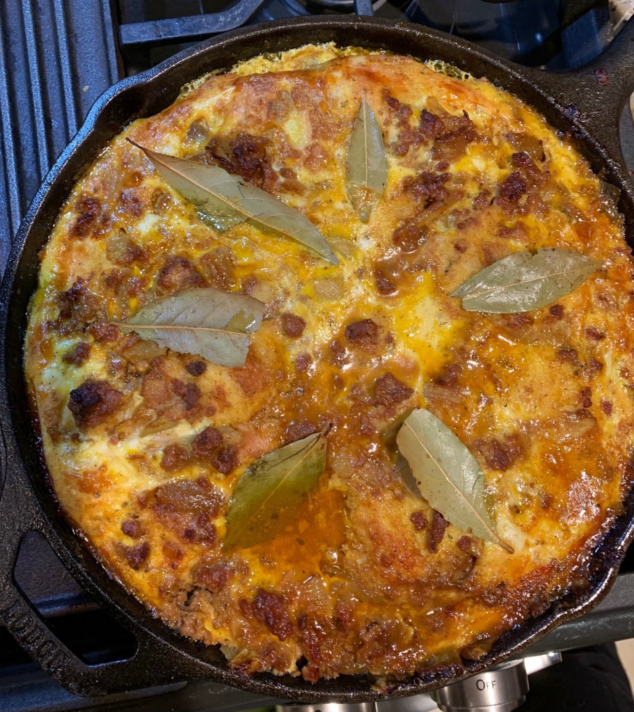 This was an extremely straightforward dish to make and while it does contain a few spices, if you’ve ever done any cooking with Indian-centric spices, you’ll be good hands with this dish that boasts curry powder, cumin, turmeric, and more. I wanted to get a bit more use out of my cast iron skillet, so I opted to minimize the number of dishes to deal with afterward and used this for all cooking steps from cooking the onions in a host of spices to mixing in the ground beef with chutney and jam to moving this into the oven to cook and set.