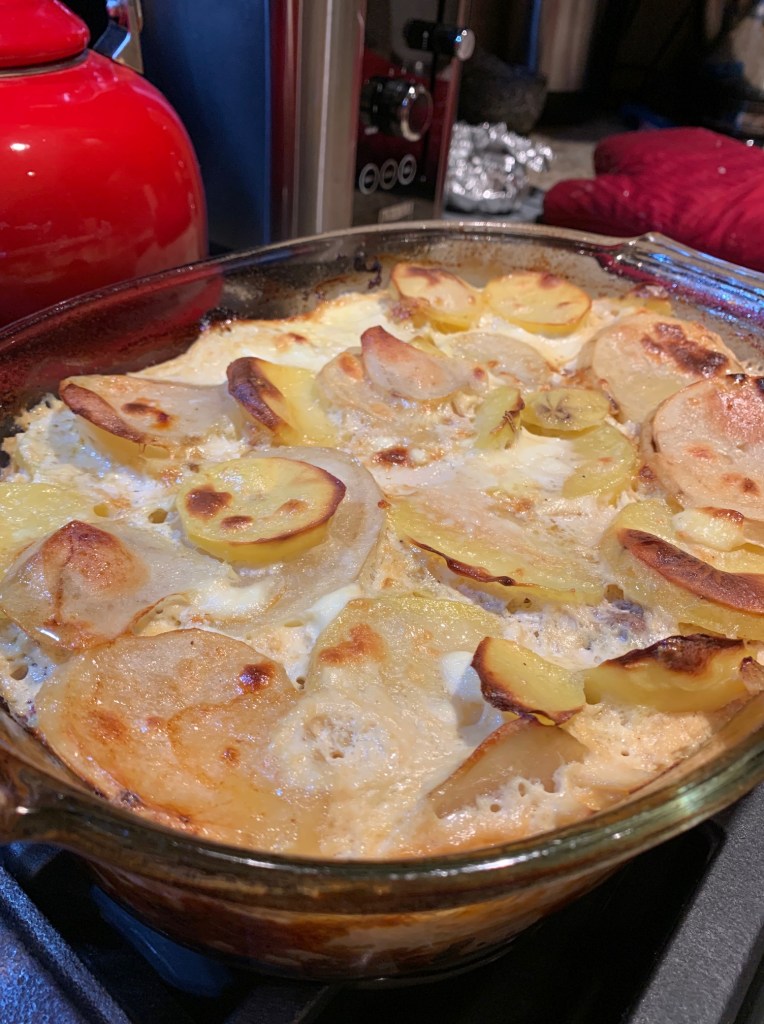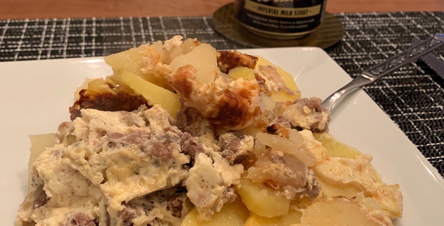 The ratios on this recipe leaned heavy in favor of the potatoes and I had too much for just one casserole dish, so I made two and shared with a friend! The sauce is comprised of sour cream, milk, and egg so this is a pretty economical meal for the winter months and kid-friendly.
