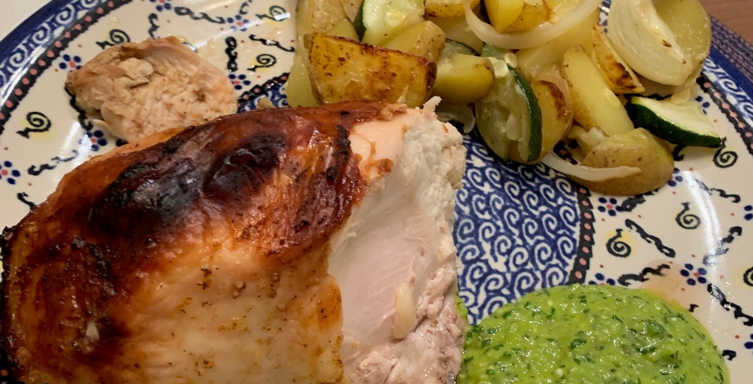 Additional Notes: The recipe suggests you can do chicken parts for this which I think will also work well but I love a good bone-in chicken breast so I opted to split a whole chicken.