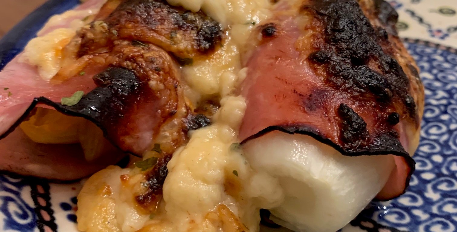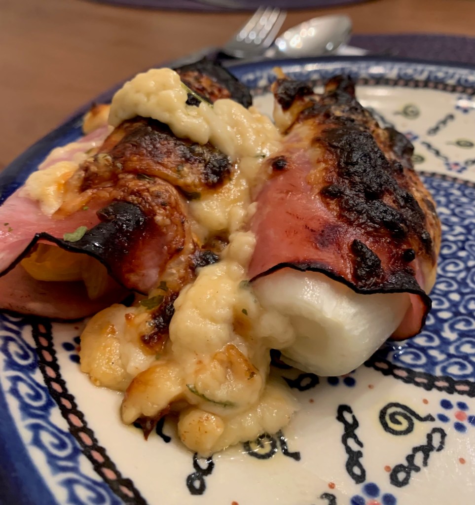 For my final country of the year I selected Belgium and found a dish that reminded me of the chicken cordon bleu that my mom used to make but instead of chicken, the center was Belgian endive! This was my first time cooking endive and the hardest part was finding endives! Maybe it was the time of year or just the time I went to the grocery store but it took a third trip out (and a trip to Whole Foods) to find these. The endives are first boiled and then you make a gruyere cheese sauce for coating the endives, wrap them in ham, and then pop them in the oven under the broiler. They were ready very quickly and made a great side dish to our simple chicken dinner. In other words, they look a bit more involved than they are so if you’re looking to make an easy but sophisticated European side dish, this makes for a good option.