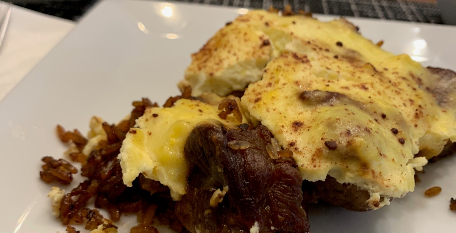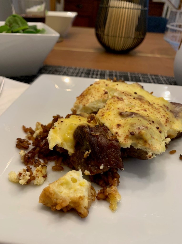 For my 129th dish, I made Tave Kosi, which is essentially a baked lamb pie representing the country of Albania. It is also the national dish! Since it was just going to be Matt and I, I took some liberties with the recipe, cutting the ingredients in half and making a much smaller “pie.” It’s important to note that is isn’t like a typical pie where there is a pastry crust. The “crust” is essentially a covering on the top of the lamb/rice mixture comprised of yogurt, egg and a little bit of flour. This resembled a Moussaka which I had made earlier in this project. Due to the heaviness of this dish, I served with a simple salad.